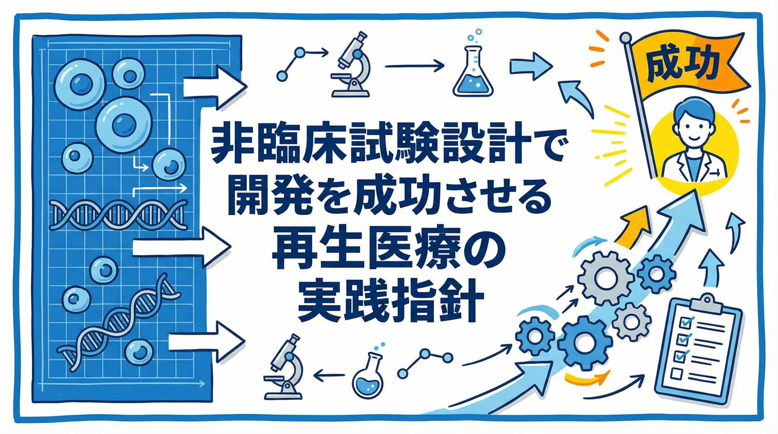 不適切な試験設計は、開発の手戻りや規制当局からの指摘といったリスクを招くだけでなく、患者様へ革新的な治療を届ける遅れにもつながりかねません。本記事では、PMDA相談やプロトコル作成を控えた皆様に向けて、再生医療特有の非臨床試験設計のポイント、安全性・有効性の評価戦略、そして開発効率を高めるための実践的なノウハウを解説いたします。規制要件を満たしつつ、スムーズな臨床入りを実現するための指針として、ぜひお役立てください。